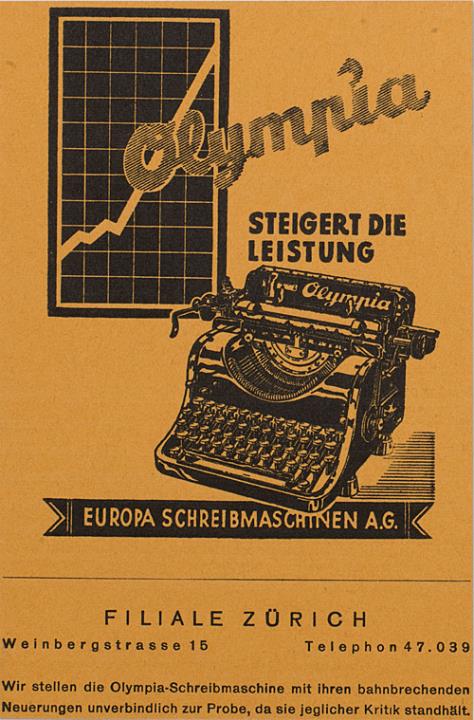Werbeanzeige für Schreibmaschine Olympia monochrom