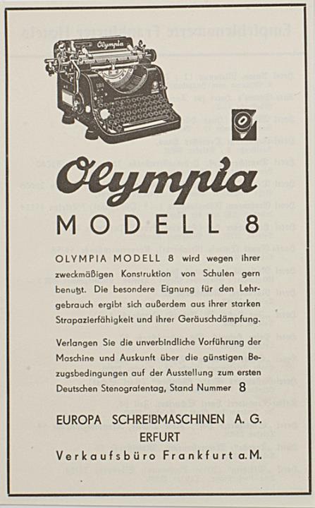 Werbeanzeige für Schreibmaschine Olympia 8 monochrom
