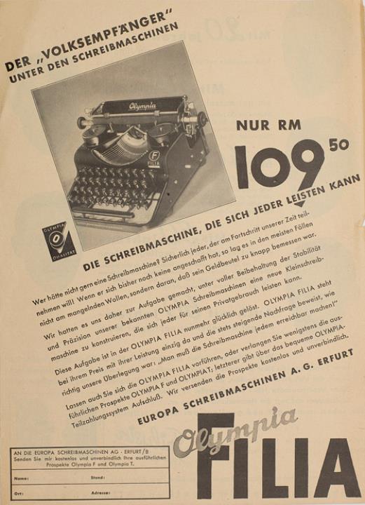Der Volksempfänger unter den Schreibmaschinen Olympia Filia