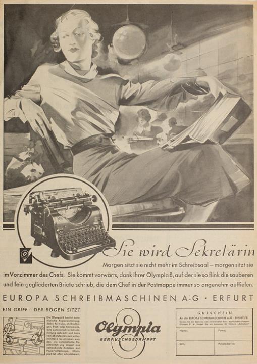 Werbeanzeige für Schreibmaschine Olympia 8 monochrom