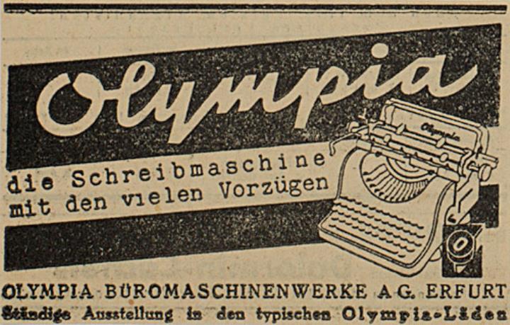 Werbeanzeige für Schreibmaschine Olympia monochrom
