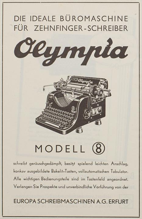 Werbeanzeige für Schreibmaschine Olympia 8 monochrom
