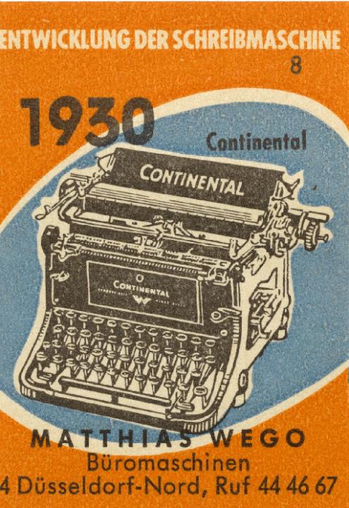 Reklamemarke/Werbemarke einer Serie (Matthias Wego Büromaschinen); rechteckig, polychrom 1930. Continental