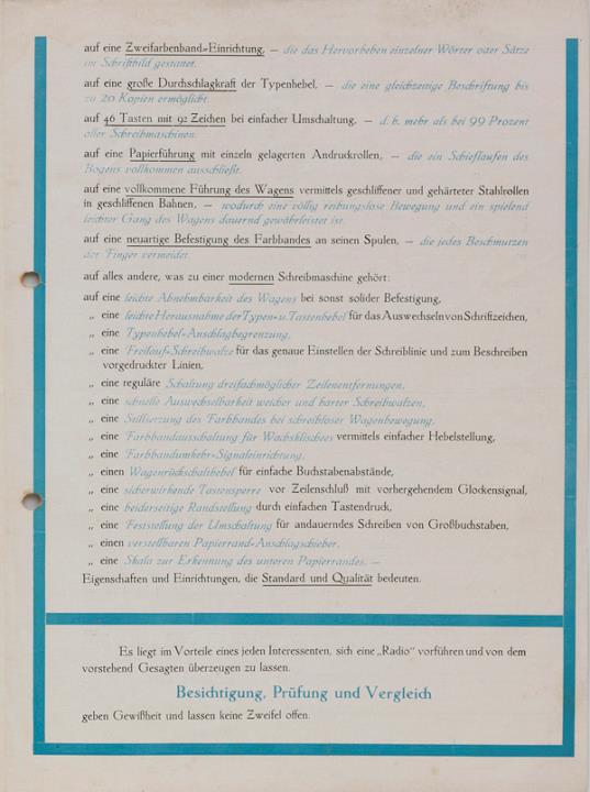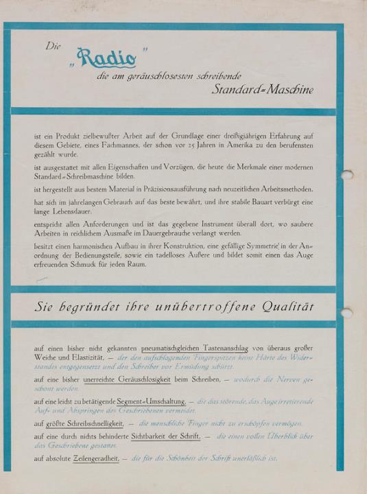 Faltprospekt für Schreibmaschine Radio ein Standard-Fabrikat für Büro und Privat