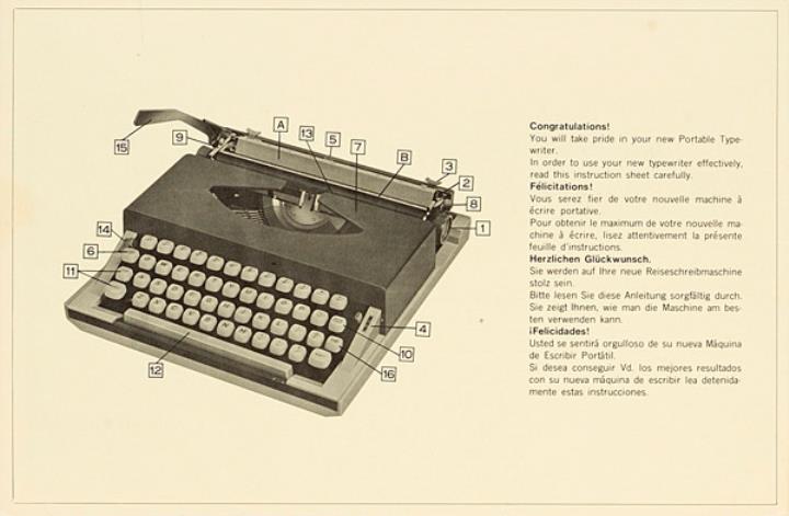 Bedienungsanleitung viersprachig für tragbare Schreibmaschine Royal Nr. JP-3919RA