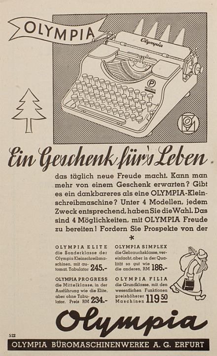 Werbeanzeige für Schreibmaschine Olympia monochrom
