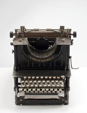 Schreibmaschine Smith Visible Eigenschaften: Typenhebel, Vorderanschlag, einfache Umschaltung, Farbband Tastatur: universal, vierreihig, 38 Schreibtasten Konstrukteur: Charles Elmer Yetman Besonderheit: von John L. Schmidt ab 1909 produziertes Nachfolgemodell der Fernschreiber-Schreibmaschine Yetman Transmitting Machine (ohne Telegrafiereinrichtung); Zeilenschaltung mittels Hebelarm