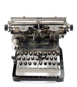 Schreibmaschine Sterling Modell 1 Eigenschaften: Typensegment, Druckhammeranschlag, doppelte Umschaltung, Farbband Tastatur: universal, dreireihig, 28 Schreibtasten Konstrukteur: Charles John Paulson andere Bezeichnung (mutmaßliche Vorgänger): Delfi, Eagle