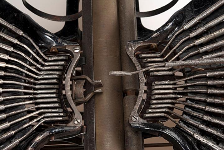 Schreibmaschine, Typenhebel, Oberanschlag, Grashüpferbewegung, Farbkissen
