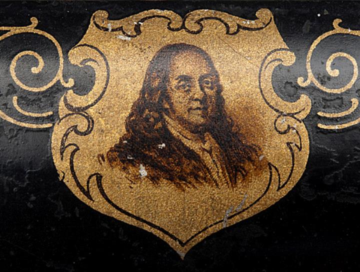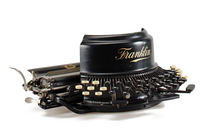 Schreibmaschine Franklin Modell 7 Eigenschaften: Typenhebel stehend, Oberanschlag, einfache Umschaltung, Farbband Tastatur: halbrund, universal, dreireihig, 40 Tasten Konstrukteur: Wellington Parker Kidder, Walter J. Barron Besonderheit: Zahnradverbindung der Tasten-und Typenhebel, achteckige Tasten, aufrecht positionierte Farbbandspulen; benannt nach Benjamin Franklin, Seriennummer 14520