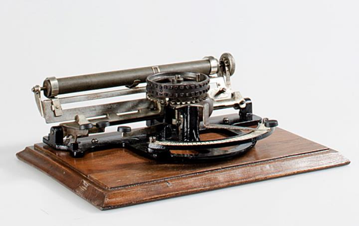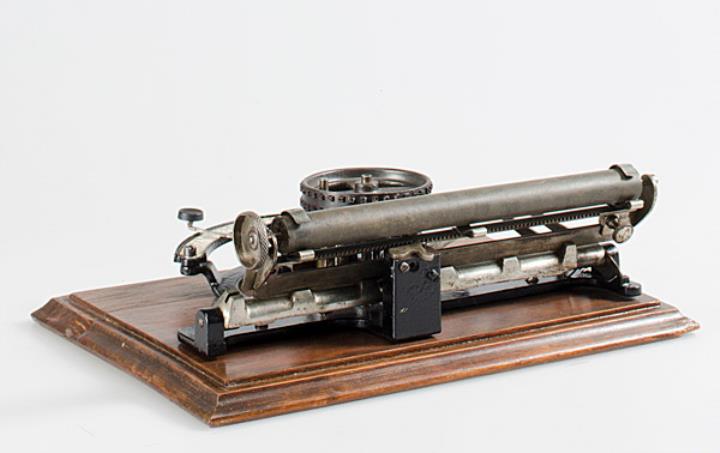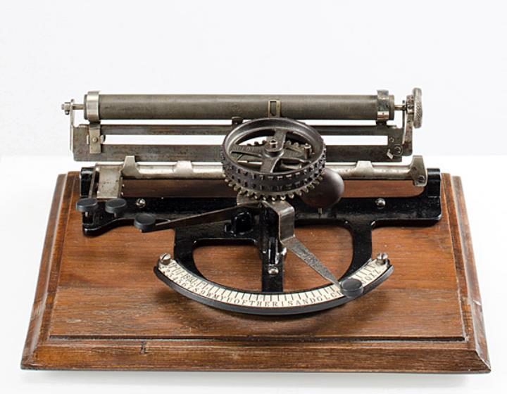 Schreibmaschine People's; auf Holzbasis montiert Eigenschaften: Zeiger, flacher Typenzylinder, einfache Umschaltung, Vorderanschlag, Farbband ringförmig um den Typenträger gespannt (nicht mehr vorhanden) Konstrukteur: Byron Alden Brooks, Carl J. A. Sjoberg Nachfolgemodell: Champion, Seriennummer 8863