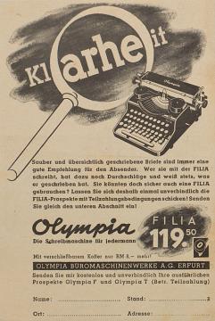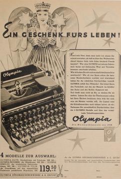 Next to literature on the history of technology, of the typewriter and the office, the Archive holds patent letters, textbooks and instruction manuals as well as historical postcards, letters, photographs and various kinds of advertising (leaflets and brochures, advertising stamps, newspaper ads, posters and signs, promotional gifts).