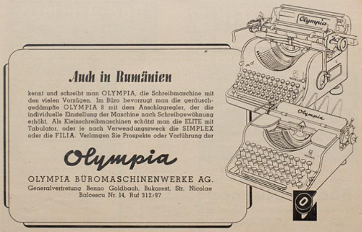 Werbeanzeige für Schreibmaschinen Olympia monochrom