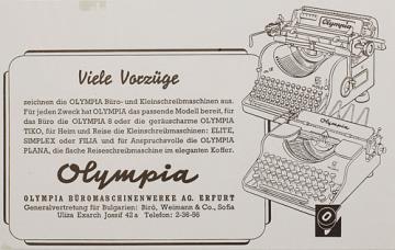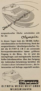 Werbeanzeige für Schreibmaschine Olympia monochrom