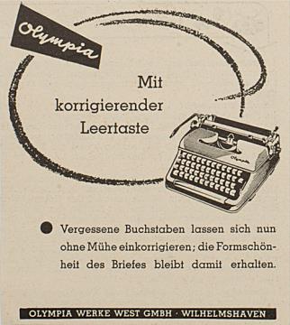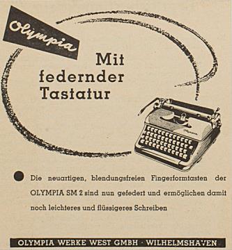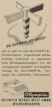 Werbeanzeige für Schreibmaschinen Olympia monochrom