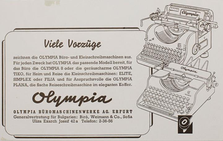 Werbeanzeige für Schreibmaschinen Olympia monochrom