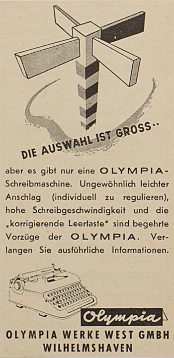 Werbeanzeige für Schreibmaschine Olympia monochrom