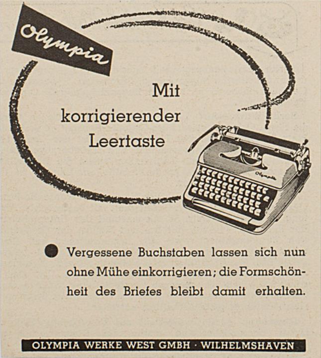 Werbeanzeige für Schreibmaschine Olympia monochrom