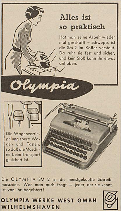 Werbeanzeige für Schreibmaschine Olympia monochrom