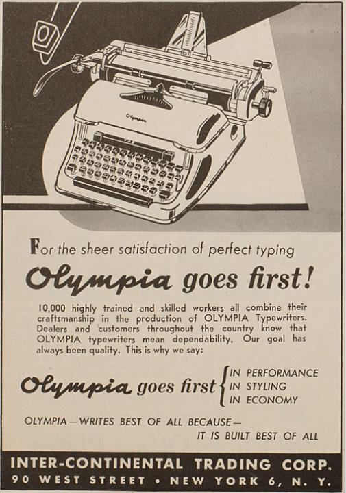 Werbeanzeige für Schreibmaschine Olympia monochrom