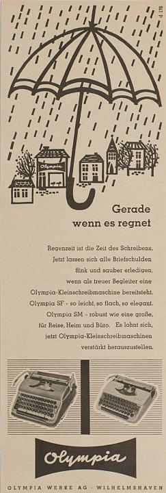 Werbeanzeige für Schreibmaschine Olympia monochrom