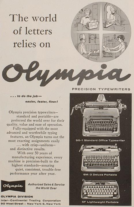 Werbeanzeige für Schreibmaschinen Olympia monochrom