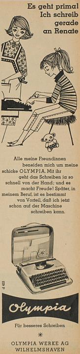 Werbeanzeige für Schreibmaschine Olympia monochrom