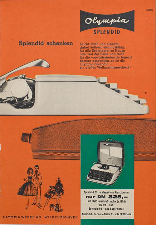 Werbeanzeige für Schreibmaschine Olympia Splendid polychrom; Nr. d280c