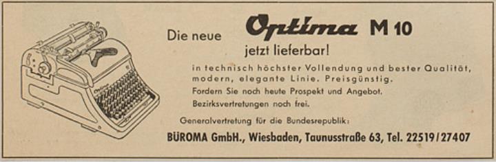 Werbeanzeige für Schreibmaschine Optima monochrom