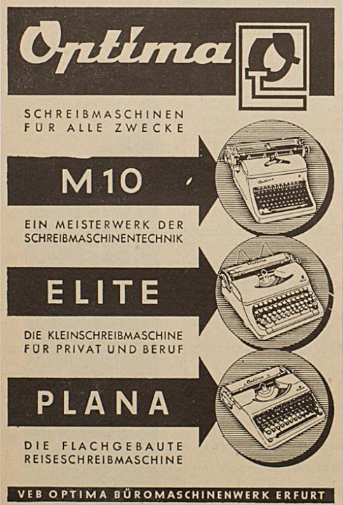 Werbeanzeige für Schreibmaschinen Optima monochrom