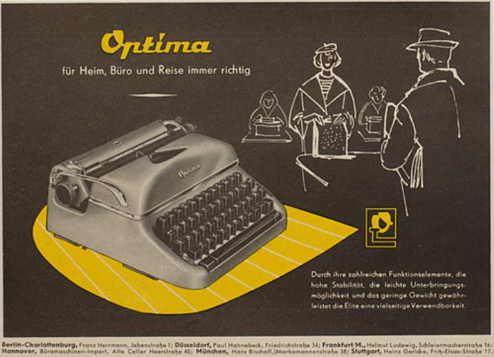 Werbeanzeige für Schreibmaschine Optima polychrom