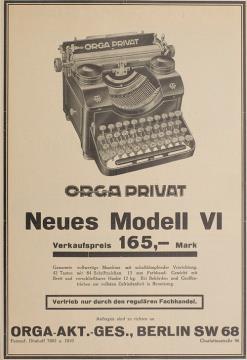 Werbeanzeige für Schreibmaschine Orga 6 monochrom