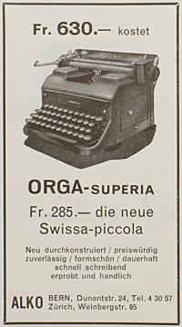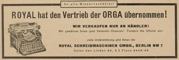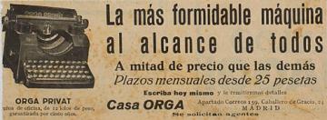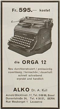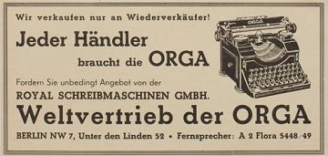 Werbeanzeige für Schreibmaschine Orga monochrom