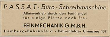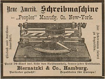 Werbeanzeige für Schreibmaschine Peoples monochrom
