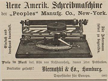 Neue Amerik. Schreibmaschine der Peoples Manufg. Co.