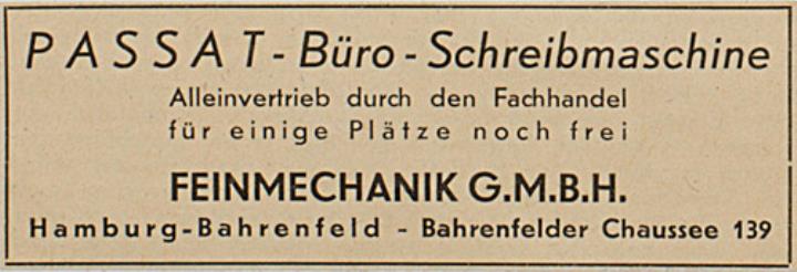 Werbeanzeige für Schreibmaschine Passat monochrom