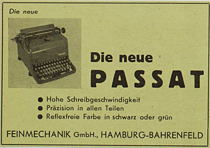Werbeanzeige für Schreibmaschine Passat monochrom