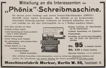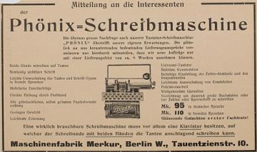 Mitteilung an die Interessenten der Phönix-Schreibmaschine