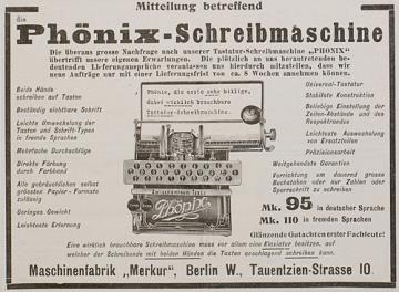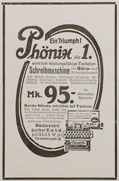 Werbeanzeige für Schreibmaschine Phönix polychrom