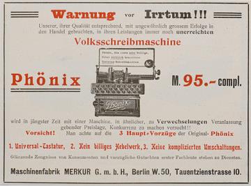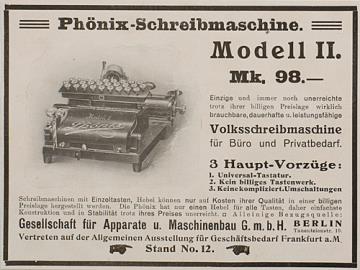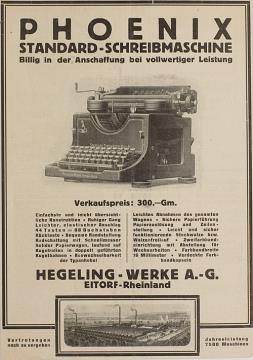 Werbeanzeige für Schreibmaschine Phönix monochrom