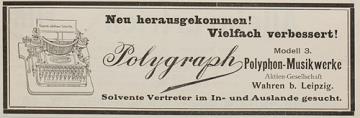 Werbeanzeige für Schreibmaschine Polygraph monochrom