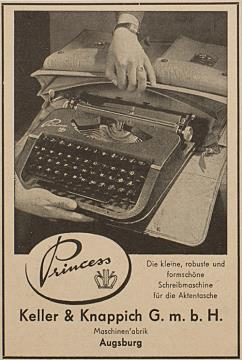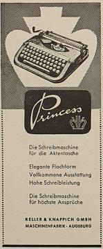 Werbeanzeige für Schreibmaschine Princess monochrom