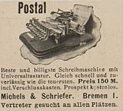 Werbeanzeige für Schreibmaschine Postal monochrom