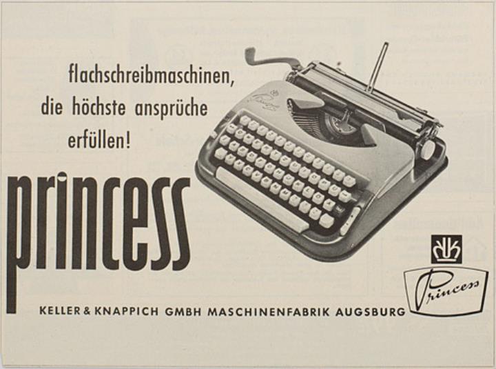 Werbeanzeige für Schreibmaschine Princess monochrom