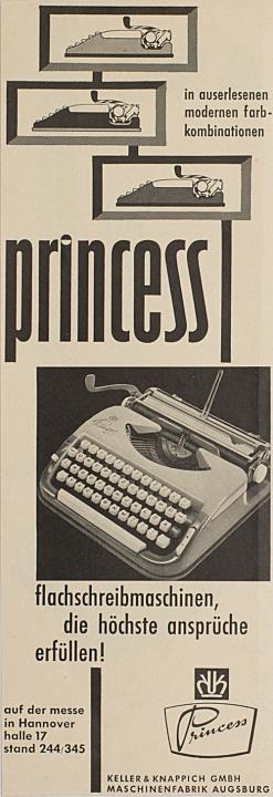 Werbeanzeige für Schreibmaschine Princess monochrom