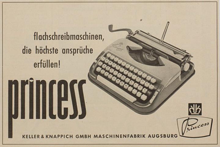 Werbeanzeige für Schreibmaschine Princess monochrom