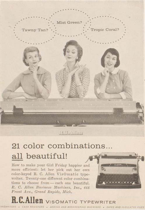 Werbeanzeige für Schreibmaschine R.C. Allen VisOmatic monochrom