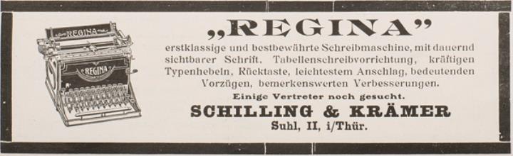 Werbeanzeige für Schreibmaschine Regina monochrom