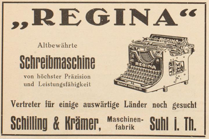 Werbeanzeige für Schreibmaschine Regina monochrom