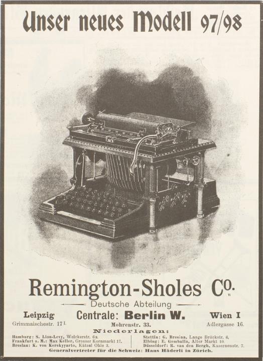 Werbeanzeige für Schreibmaschine Remington Sholes monochrom
